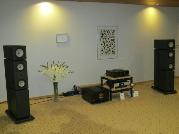 The Ataria & Audist setup consisted of the massive Fischer & Fischer SL 1000 speakers driven by MBL electronics. I got the sweet spot here, but actually the other chairs delivered also good results. We did not found any critical flaws, except some clear negatives caused by the room modes. The sound was really powerful, extensive and well in balance (a couple of exceptions in bottom end). We could enjoy also the exceptionally big sonic picture. Agreed was, that this was the most impressive room of the event, although not quite the best in every feature.
