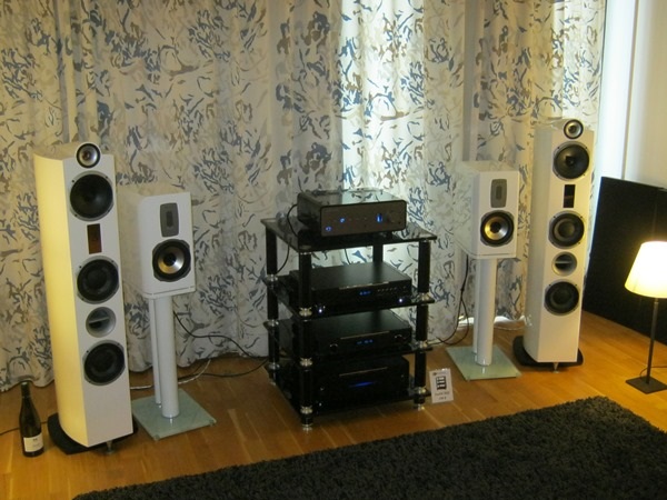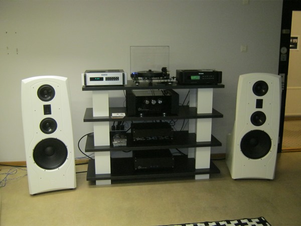 The Avantgarde Acoustic Zero 1 speakers were fed by EAR Acute III and a laptop in Sound Factor’s first room. Music samples were reproduced very mercilessly reminding partly features that PA-speakers commonly offer. The sound was very fast, open and well controlled, but in our opinion, had also slight lacks in tonality, extensions and soundstaging. We suspected that the room ate a bit too much from the bass, just as it did years ago with the MG 3.7s, resulting in slightly thin over-all sound. So, this setup was a bit bipolar. Anyway, I think that by help of its strengths the setup deserved its place among the very best ones.