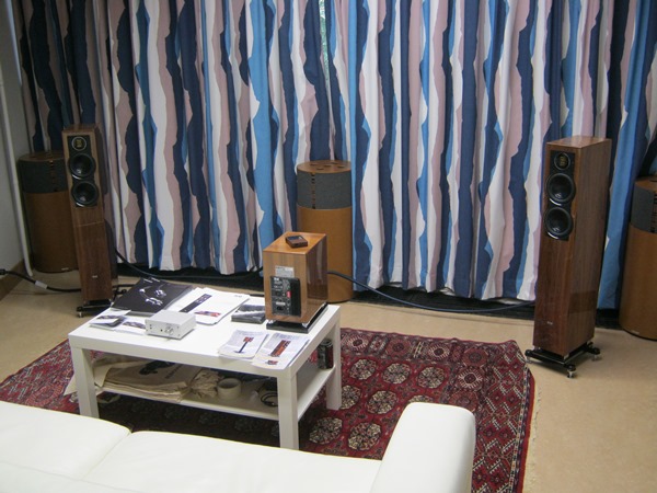 One of the best price/quality speaker demonstrations was held in the Harrin Kaiutin’s room, once again. The sound was very well in balance and had not remarkable flaws at all. Naturally, the last bits of extensions, details, dynamic contrasts and realism were missing in comparison to the much larger and much more expensive reference speakers/systems. But in this event category, this setup easily belonged to the very best group. Again, there were no remarkable “bottle necks” in the front end, which consisted of Ayre and ASR electronics.