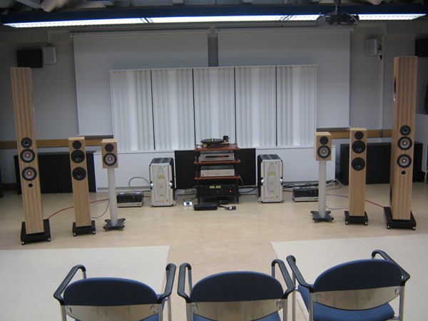 Hifigurulla oli 25 juhlavuoden kunniaksi messujen juhlavin huone. Onneksi juhlavuus ei jäänyt pelkästään esteettiselle tasolle, vaan kuului myös musiikissa. Huoneessa nimittäin tarjoiltiin ilmavaa ja detaljirikasta musiikkia sekä CD-levyiltä että etenkin vinyyleiltä. Kun huomioidaan, että kaiuttimina olivat paneelit, niin tarjolla oli mukavasti dynamiikkaakin. Tosin niin iskevään ja kontrolloituun esitykseen, mitä parista muusta kärkihuoneesta löytyi, ei ihan päästy. Alarekisterin toistoa oli kuuntelutilan ominaispiirteiden johdosta tuettu Velodynen subbasella, jonka vaikutusta jouduin hiukan pienentämään saavuttaakseni mieluisimman balanssin testilevyilleni. Esitys oli kokonaisuutena hyvin erotteleva, varsin tasapainoinen, selkeä ja sävyllisestikin luonteva, joskin keskialueeltaan aavistuksen etäinen. Kattaus kuului ehdottomasti messujen kärkikastiin, mutta olen todennut sen soivan Gurun omassa kuuntelutilassa vieläkin paremmin, mikä ei liene kenellekään suuri yllätys.